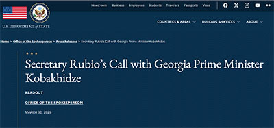 Ираклий Кобахидзе - У меня состоялась продуктивная беседа с Марко Рубио, мы обсудили важность перезапуска партнерства и укрепления роли Грузии на Южном Кавказе